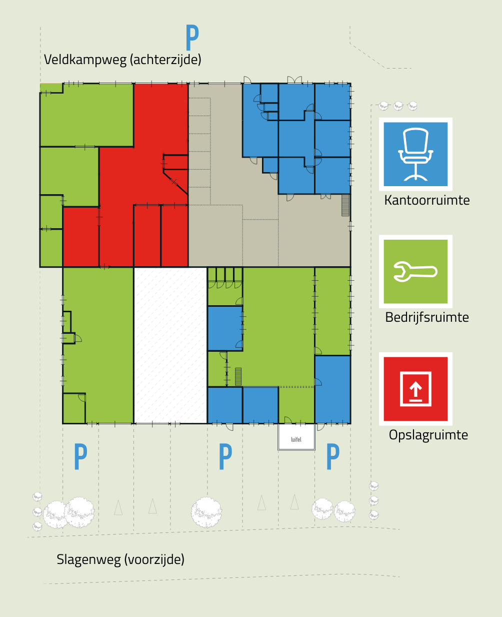 Combinaties mogelijk in kantoor, productie en opslag ruimte. Er zijn ruimtes te huur van 10 tot 1000 m2, met of zonder faciliteiten.